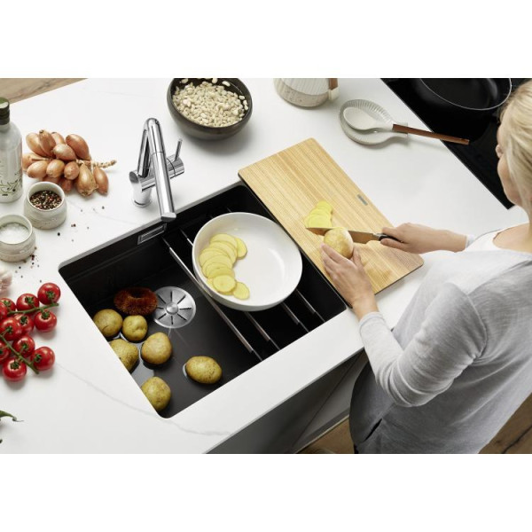 Daska za rezanje je nezamenljivi alat u kuhinji, ali šta ako je ona napravljena da savršeno naleže na vašu sudoperu, pored toga što je možete koristiti na vašoj radnoj površini? BLANCO daske za rezanje kreirane su od najkvalitetnijih materijala i specijalno dizajnirane da naležu na određene modele BLANCO sudopera i klize po njihovoj površini kreirajući skladu sveobuhvatnu radnu stanicu i povećavajući radnu površinu vaše kuhinjeKlize samo po ivici sudopere, dok specijalne nožice sprečavaju klizanje daske kada se nađe na radnoj površini kuhinje. Ova drvne daska odgovara velikom broju BLANCO SUBLINE, PLEON i ETAGON modelu sudopera. Pročitaj naš blog o daskama za rezanje OVDE i saznaj više o njihovom pravilnom održavanju.