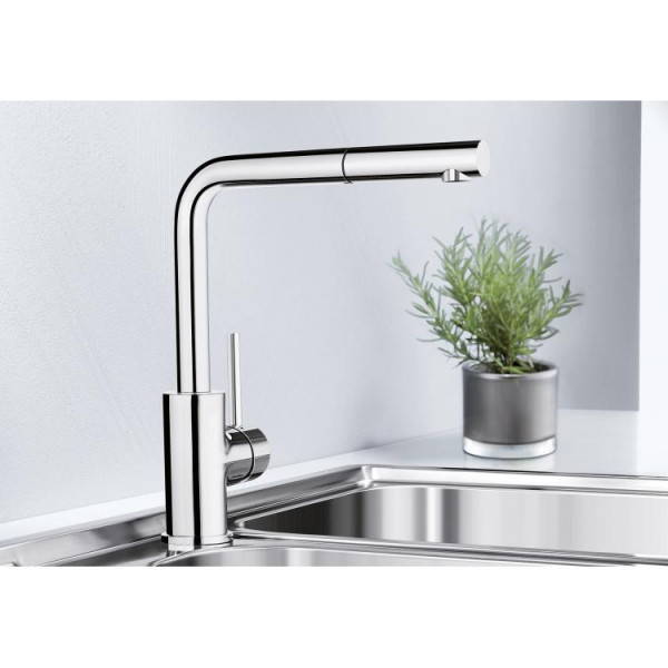 Modeli BLANCO MILA čest su izbor naših kupaca jer se moderan L oblik a jednostavan izgled lako uklapa u svaki stil kuhinje. Ovaj model ima mogućnost izvlačenja creva te se tako povećava opseg rada same slavine na celu površinu sudopere ali, po potrebi, i van njeHrom površina je čini lako uklopivom u razne stilove kuhinja.