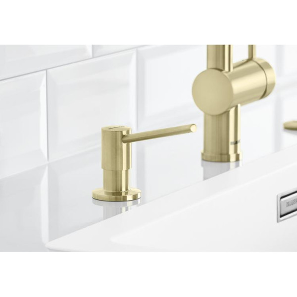 Praktičan dozer za deterdžent koji se lako uklapa uz saten zlatne slavine iz BLANCO asortimana. Držanje flašica sa deterdžentom za pranje suđa na sudoperi ili kraj nje nikako nije estetski primamljivo ali ni praktičnoPotrebno je flašicu svaki put otvoriti, iscediti deterdžent i zatvoriti, a ako je ne držite na dohvat ruke, prvo ju je potrebno izvaditi iz ormarića ili fioke.