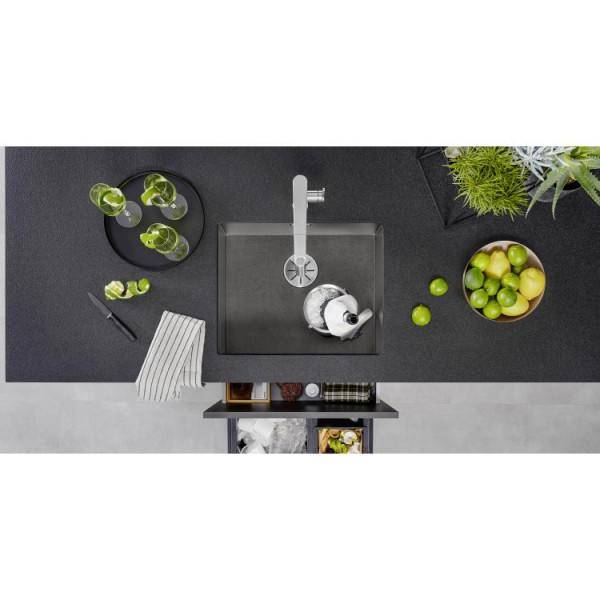 BLANCO ZEROX 500-U je standardnih dimenzija, pogodna za većinu kuhinja, jer ogovara podormaru od 60 cmCeo dojam upotpunjuje moderan i higijenski prelivnik C-overflow™ Steelart i InFino inovativni slivnik.