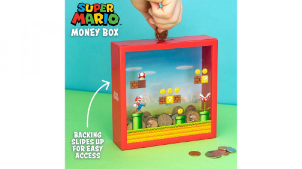 U Super Mario igrama cilj je da idete kroz nivo i skupljae novčiće. To je bila ideja dizajnera firme Paladone, da se napravi kasica upravo ovakvog dizajna. Nemojte ostavljati sitan novac po džepovima - skupljajte ga u ovoj kasici. Visoka je 18cm a dizajnirana potpuno u stilu nivoa Super Mario igara sa 3D efektom. Tu su i poznati likovi: Goomba, Pirana biljka i Mario. Idealan poklon za sve kolekcionare i ljubitelje Super Mario igara - mame, tate, bake, deke, drugove, drugarice, momke, devojke,...Zvanično licenciran Nintendo proizvod.