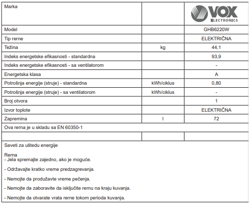 Zapremina rerne: 72 l