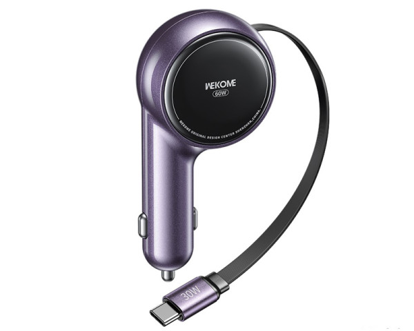 WEKOME WP-C50 Punjač za Auto sa flat Kablom na uvlčenje 3.1 tip C 60W, ljubicasti